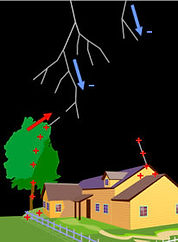 The updraft and downdraft moving past each other create a static electric charge to build up. The discharge is lightning. Lightning will normally occur from cloud to cloud, but does strike the ground often. Lightning carries thousands of volts of with it and superheats the air as it passes through the atmosphere up to 50,000 degrees Fahrenheit. This causes the bright flash we see, but as the air is heated it also expands rapidly and creates a shockwave through the air that we hear as thunder.