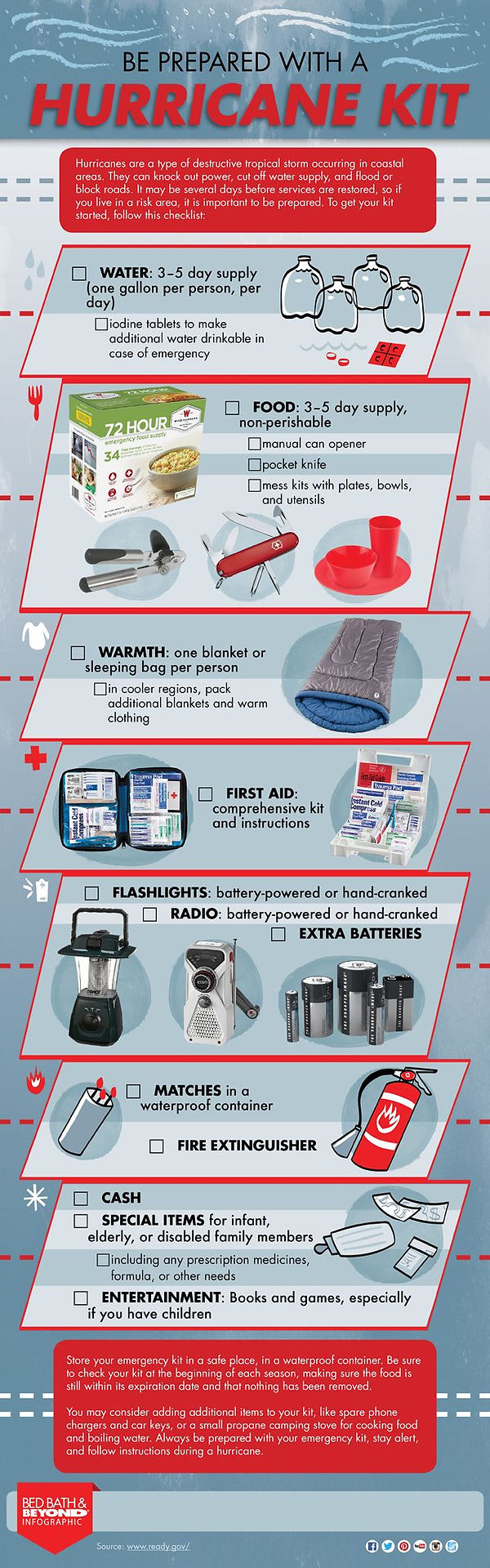 If evacuation is not an option, make sure to have 3 weeks of water and food safely stored. After a major hurricane infrastructure may be seriously damaged or completely broken down. There will be no water, no food and no power for days or even weeks.